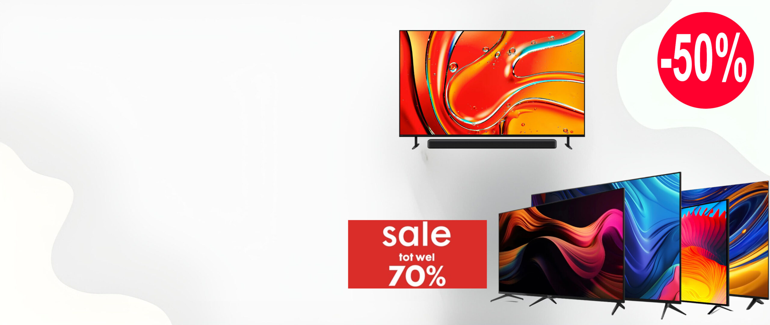 Van compacte 32-inch modellen tot 85-inch 8K-schermen — bij ons vind je de tv die bij jouw ruimte én budget past.