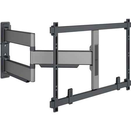 Draaibare, ultraslanke tv-beugel voor high-end tv’s van 40 t/m 77 inch. De ELITE Full-Motion+ tv-beugel combineert minimalistisch design met geweldige prestaties. De beugel is niet alleen ultraslank, maar ook ultrasterk en tot maar liefst 180° draaibaar. Kortom, de ultieme muurbeugel voor grote high-end tv’s, zoals OLED en QLED. De tv-beugel is geschikt voor schermen van 40 t/m 77 inch met een maximaal gewicht van 45 kg. In de uitgangspositie hangt je tv slechts 4 cm van de muur. Belangrijke voordelen Ultraslank en -sterk – Slechts 4 cm van de muur, ideaal voor grote OLED/QLED tv's De ELITE Full-Motion+ tv-beugel beschikt over 65 cm lange draagarmen. Soepele OneFinger™-beweging – Dankzij gecoate lagers en precisiestalen assen Perfect rechte montage – Waterpas inbegrepen 2D-Leveling™: Je tv altijd waterpas – Nauwkeurig waterpas stellen na installatie (horizontaal en verticaal) Beschermende tv-patches – Bescherm de achterkant van je tv met zachte beschermende patches